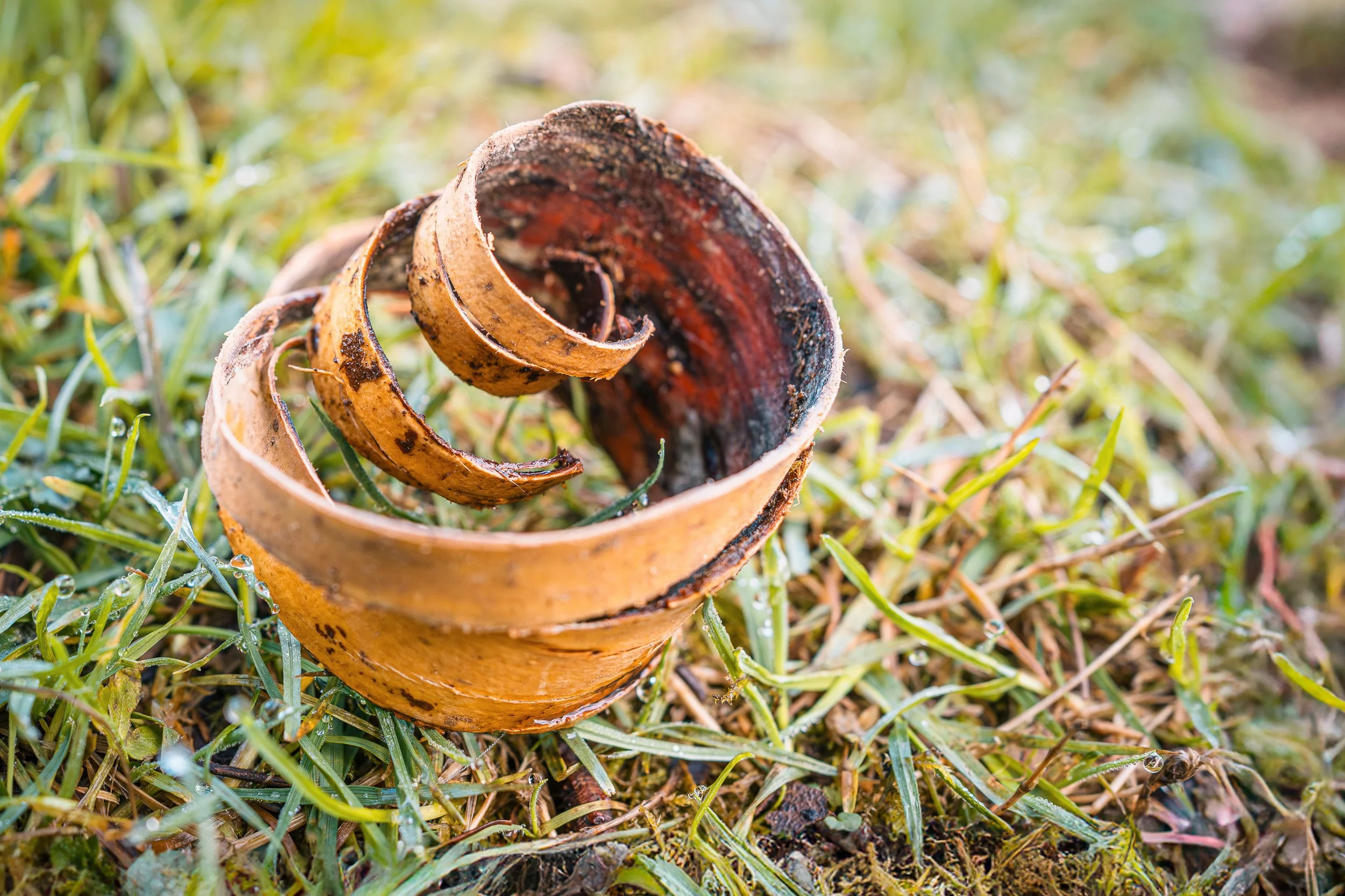 In the hush of the forest, a curl of bark poses as pastry—proof that nature has a playful side and a flair for visual poetry.